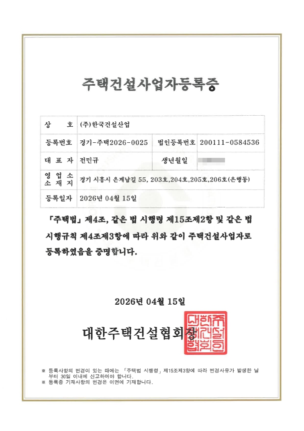 당사는 주택건설사업자를 추가로 등록하였습니다.